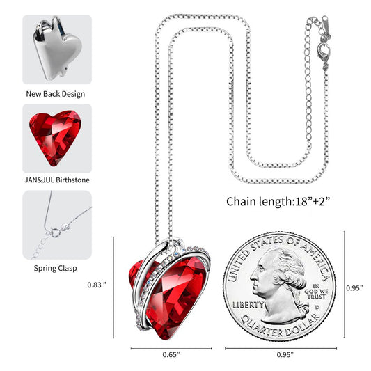 Birthstone Necklace for Women, Birthday Gifts for Women, Love Heart Crystal Necklace Jewelry Birthday Gifts for Her Women Mom Wife Girlfriend -Valentines Day Christmas Anniversary Gifts, Women Gifts